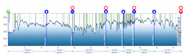 • au 50.4 km – Bois des Barres : Pas de Barrière horaire